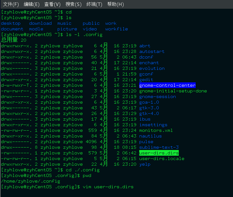 1、打开终端terminal, $ cd /home/用户名/.config/,$ ls -al (查看桌面配置文件的基本信息)。