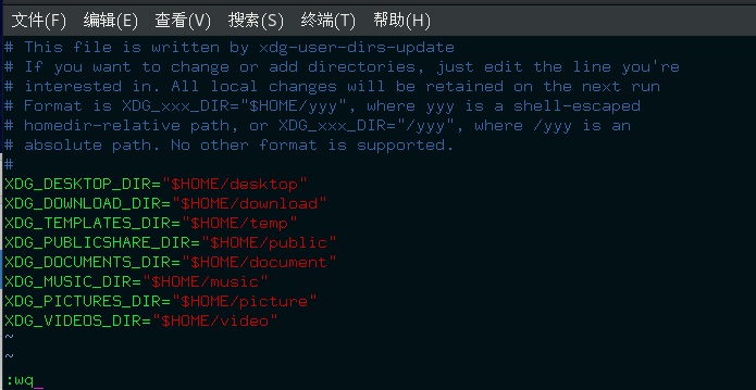 5、 保存退出。重启操作系统就可以了(如若未成功,读者可多尝试几次,若几次尝试后都不行,读者可以参考其他博主的文章哦!)。注意:(重启操作系统前您还必须在您的–用户名–目录下建有【desktop】或者【桌面】文件夹)!