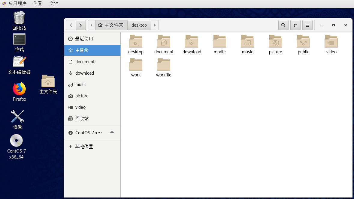 1、 直接在图形用户界面下,桌面找到【主文件夹】,双击打开。