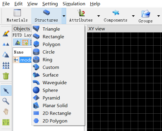 Lumerical中的结构(Structures)包含了多种基本结构,可供一般建模时使用。