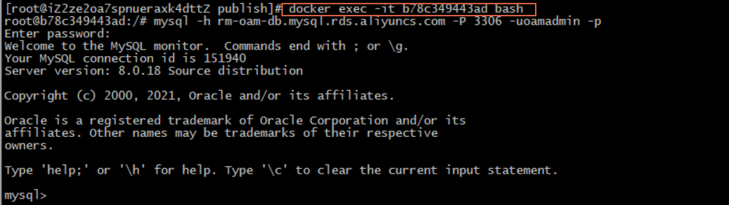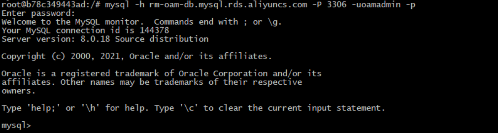 5.mysql -h rm-oam-db.mysql.rds.aliyuncs.com -P 3306 -uoamadmin -p