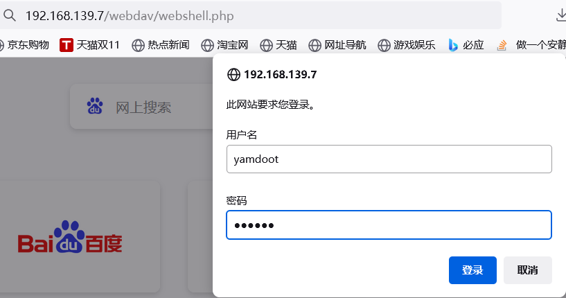 10.用爆破得到的用户名密码登录,登录成功,连接上webdav