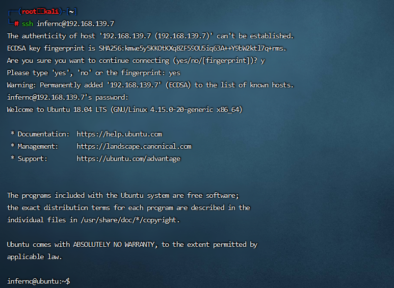 18. 用ssh尝试登录其他用户,输入刚刚解密的密码,发现成功登录该用户