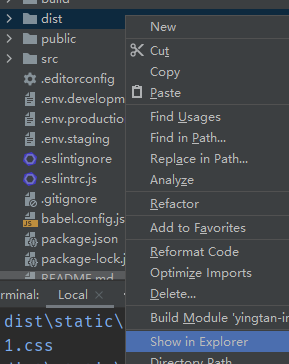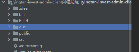在看项目目录 会发现有一个dist的文件夹(第一步截图的时候我已经打包好了, 所以那里也有一个, 本来是不应该有的)