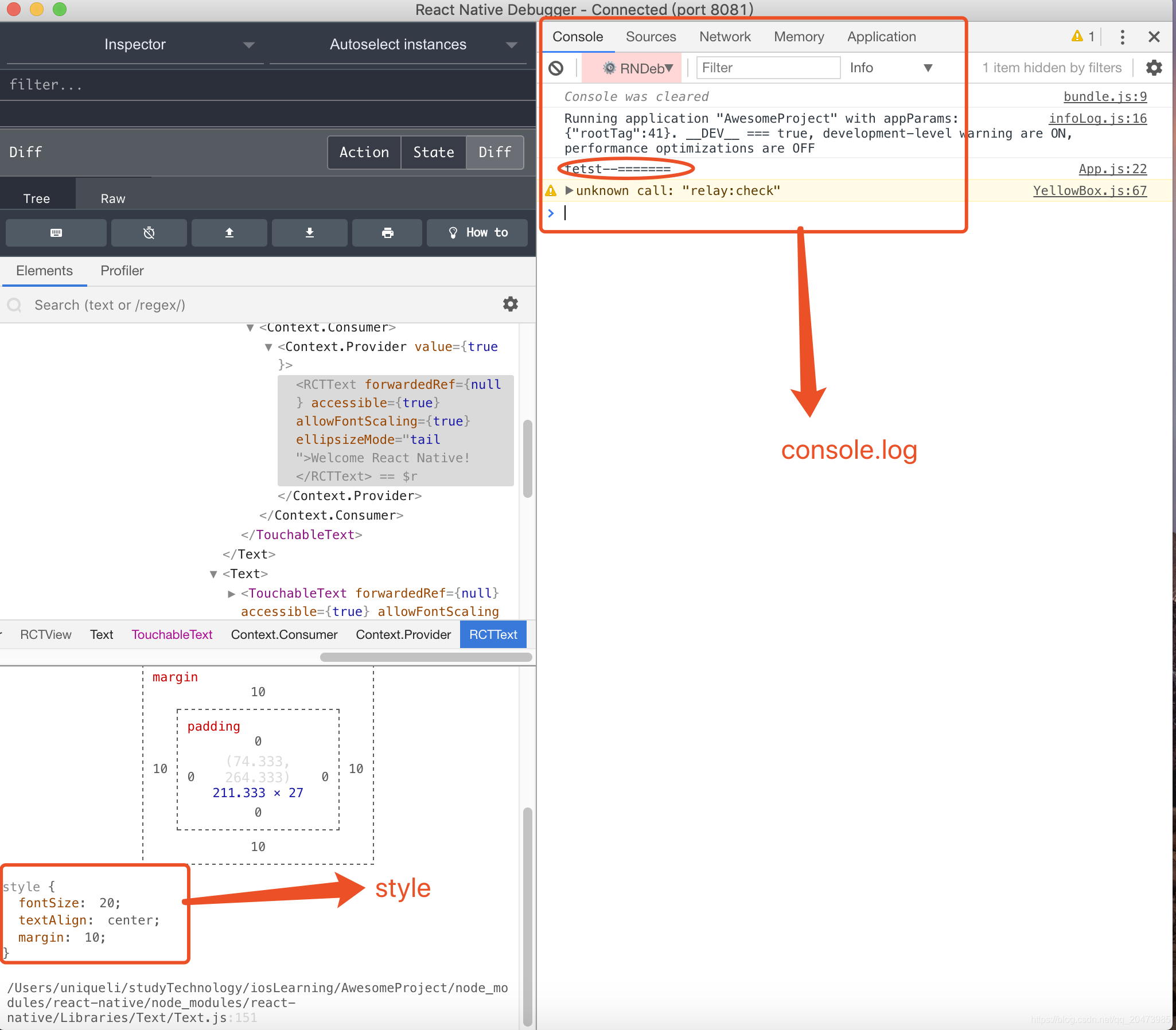 用了http://localhost:8081/debugger-ui,安装了react-devtools,又发现了一个神器,这个算是集成了react-devtools和浏览器调试。