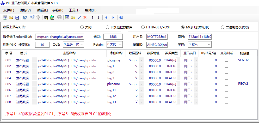 PLC2通过MQTT02设备对接云平台,智能网关配置如下: