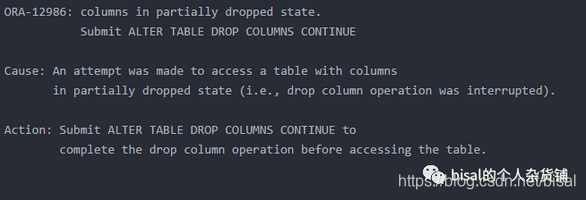 1. kill删除字段的会话,再次查询表会报ORA-12986,需要truncate表才能继续,此时要是没备份,就凉凉了。