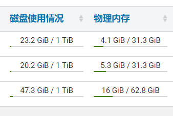 可以看到第一台剩余内存为31.3-4.1=27.2G。