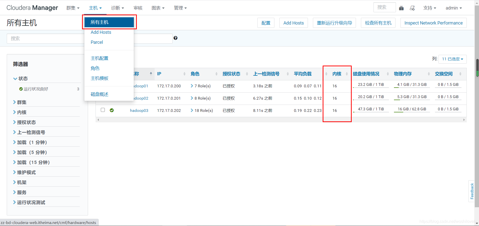 通过CM所有主机查看剩余内存: