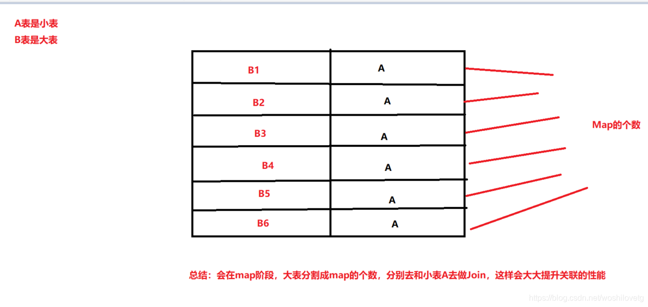MAPJION会把小表全部读入内存中,在map阶段直接拿另外一个表的数据和内存中表数据做匹配,由于在map时进行了join操作,省去了reduce运行的效率会高很多。