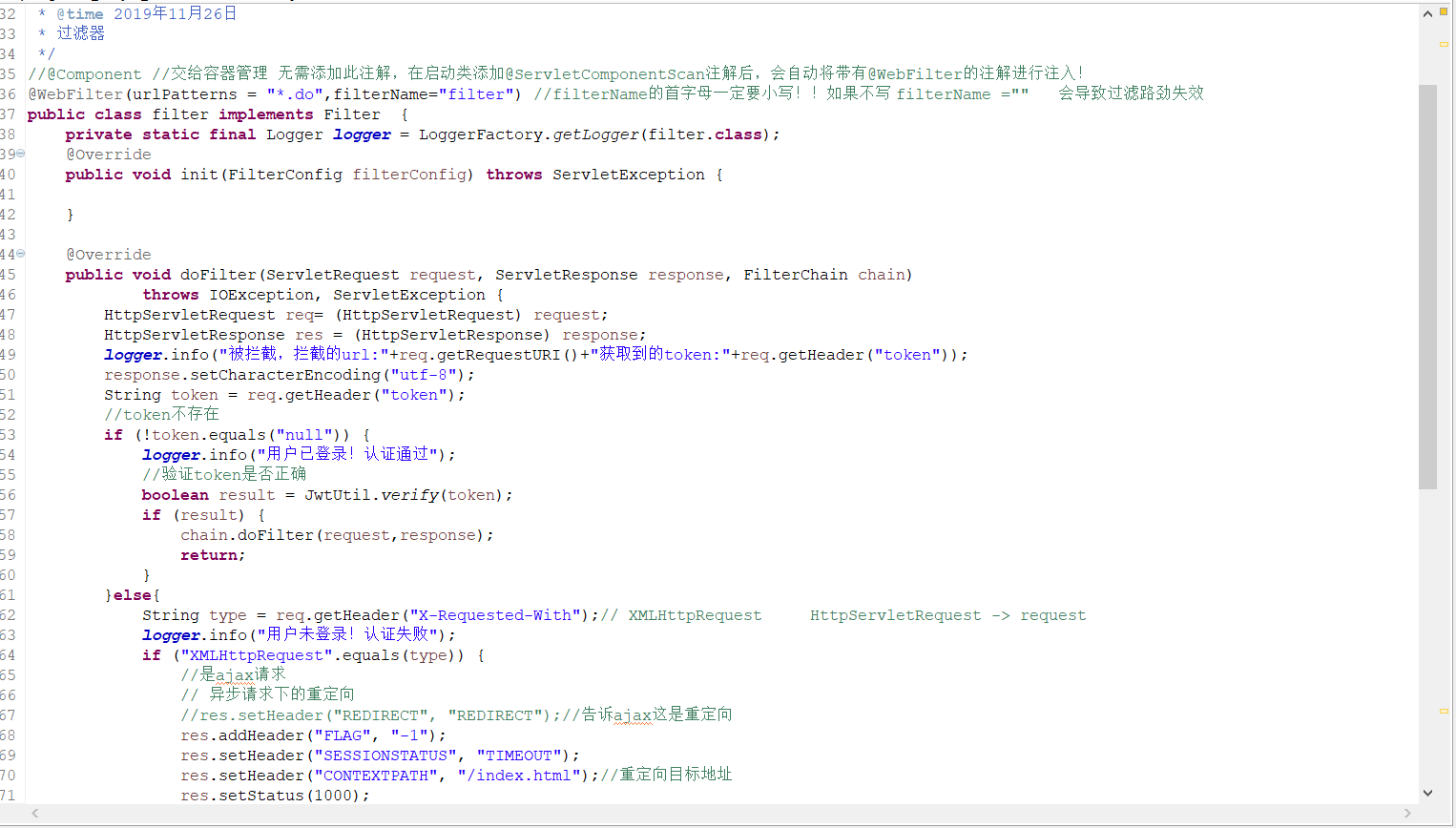 3.在登录的时候做检验,此处使用的是过滤器(注解开发)