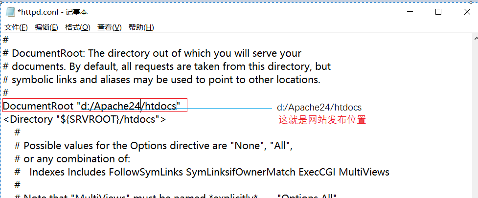 可以用记事本打开 http.conf 文件,搜索找到 DocumentRoot 为开头的那一行: