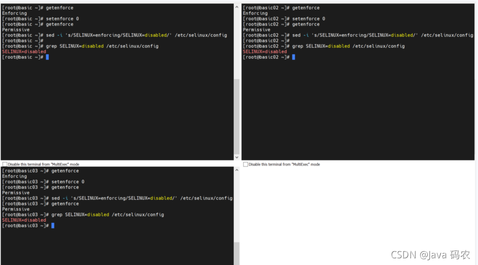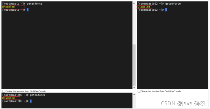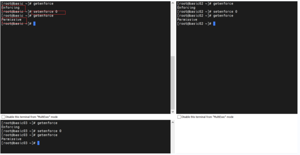 setenforce 临时禁用 sudo setenforce 0 状态变为 Permissive