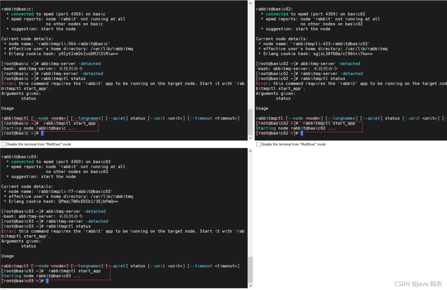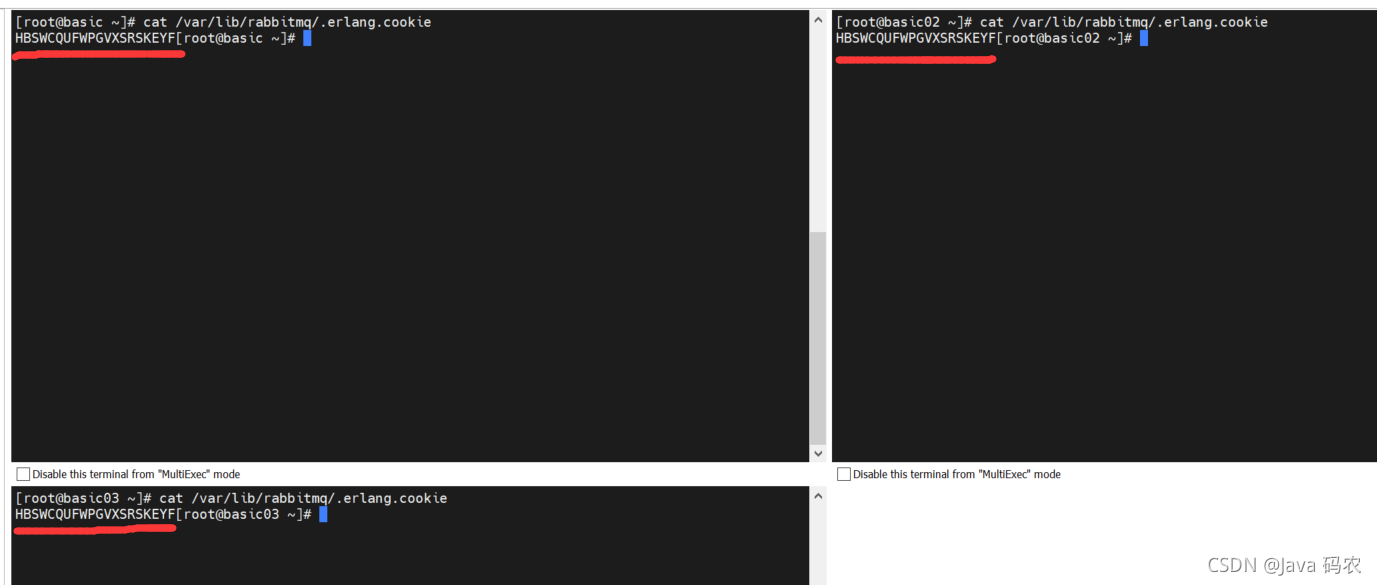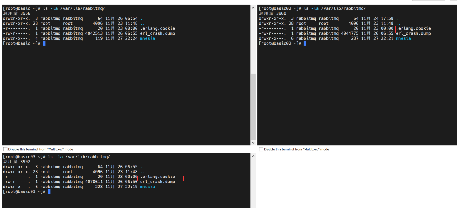 scp /var/lib/rabbitmq/.erlang.cookie root@basic03:/var/lib/rabbitmq/