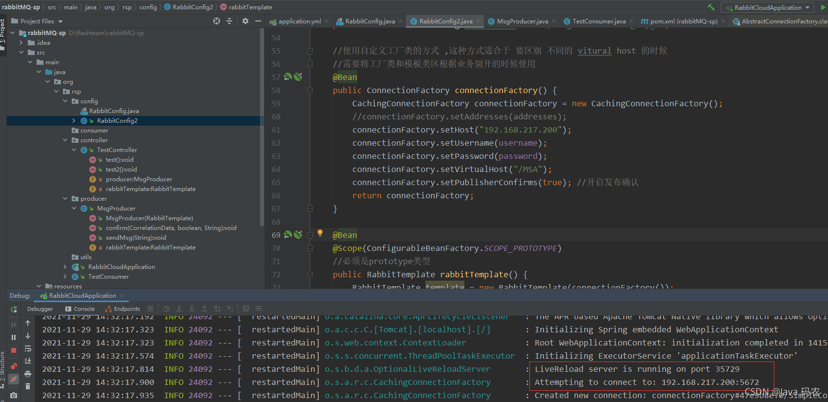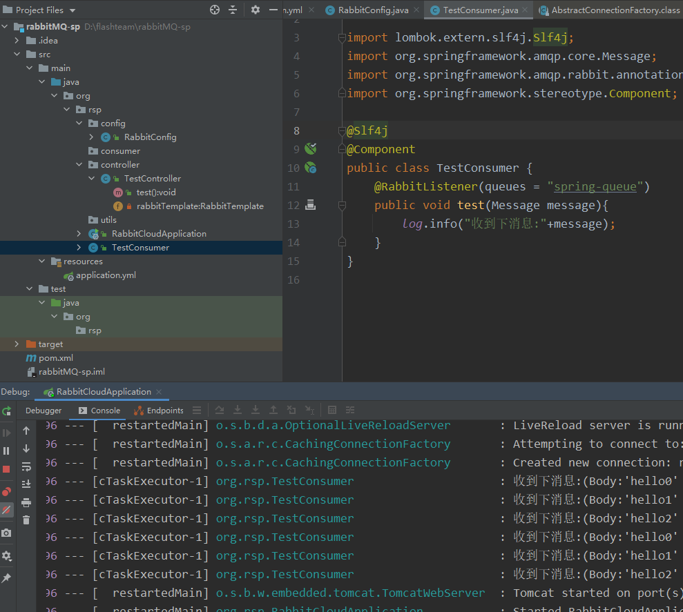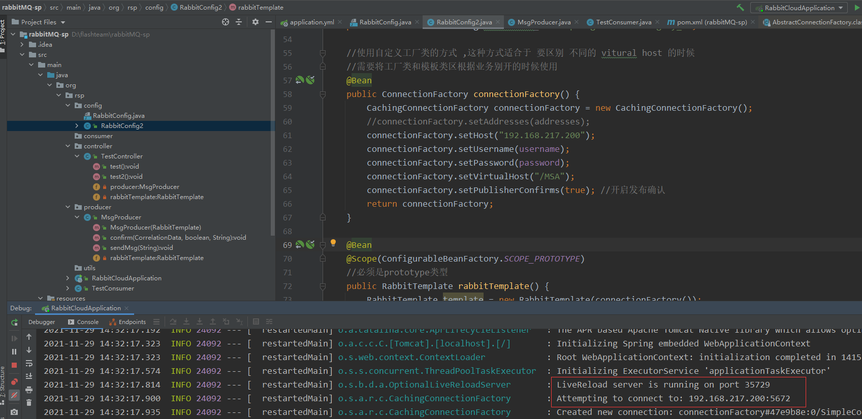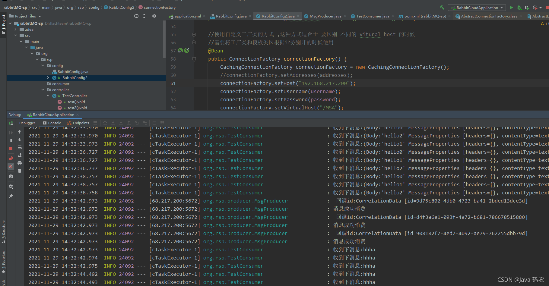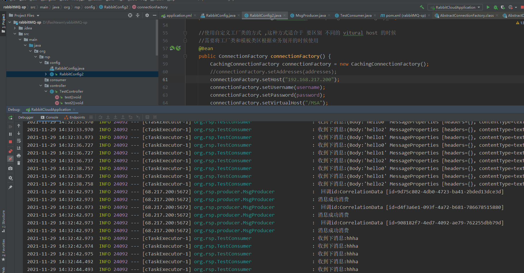 将我们之前直接连接镜像集群的代码 稍微做一点更改,然后启动服务 ,不停的发送消息