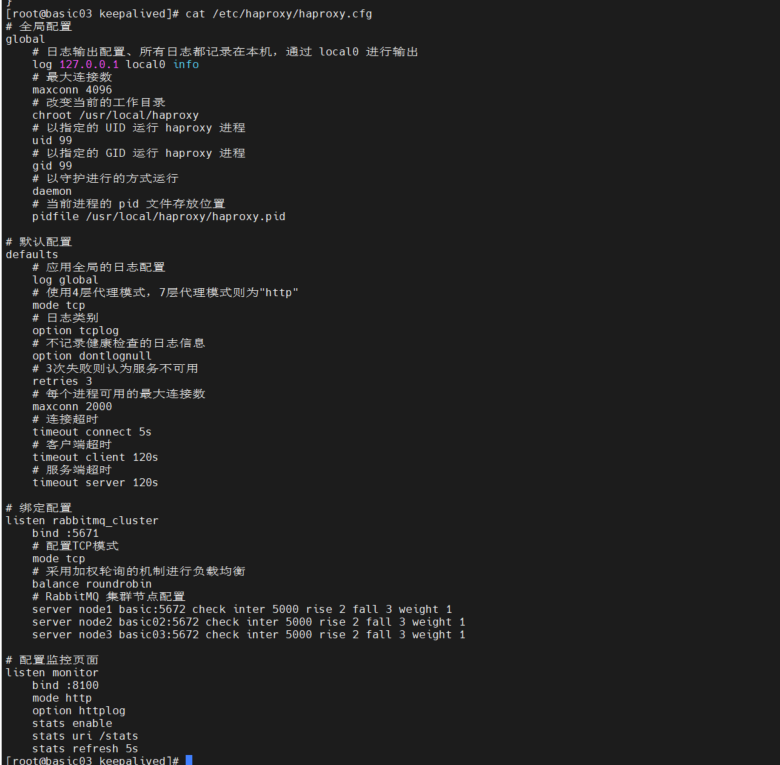 server node3 basic03:5672 check inter 5000 rise 2 fall 3 weight 1