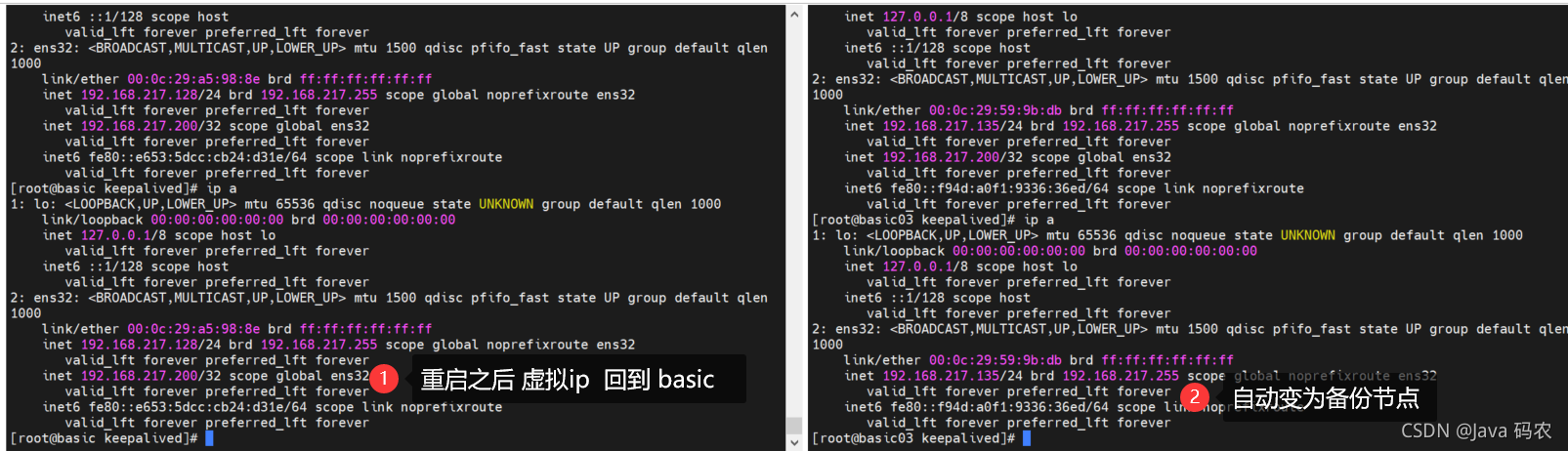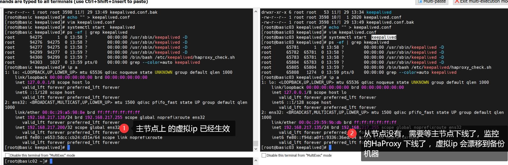 分别在 basic 和 basic03 上启动 KeepAlived 服务