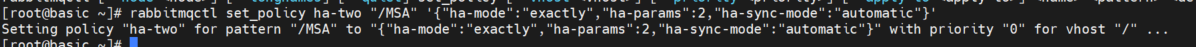 rabbitmqctl set_policy ha-two "^" '{"ha-mode":"exactly","ha-params":2,"ha-sync-mode":"automatic"}'