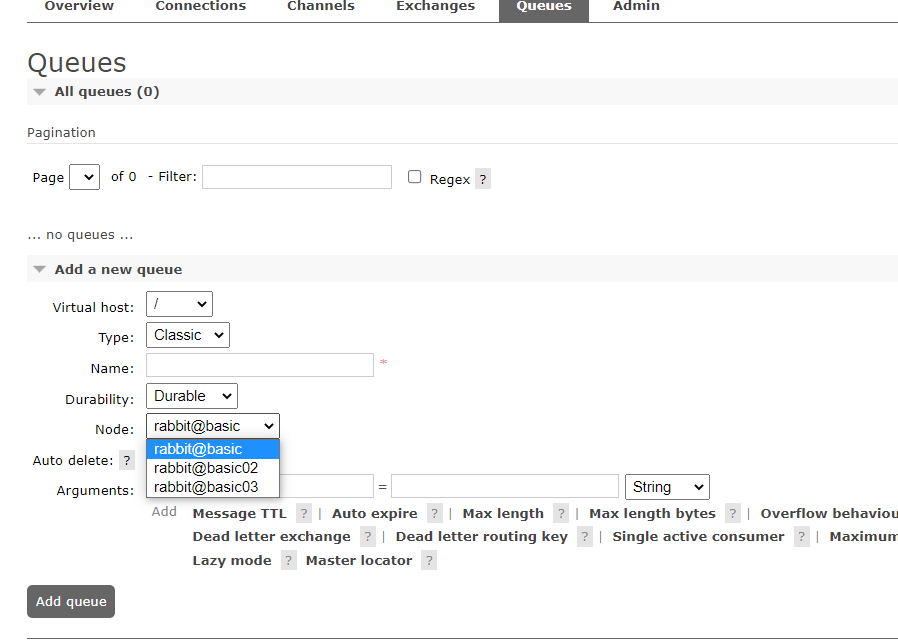开启镜像集群,这里我们为所有队列开启镜像配置,高可用策略,其语法如下: