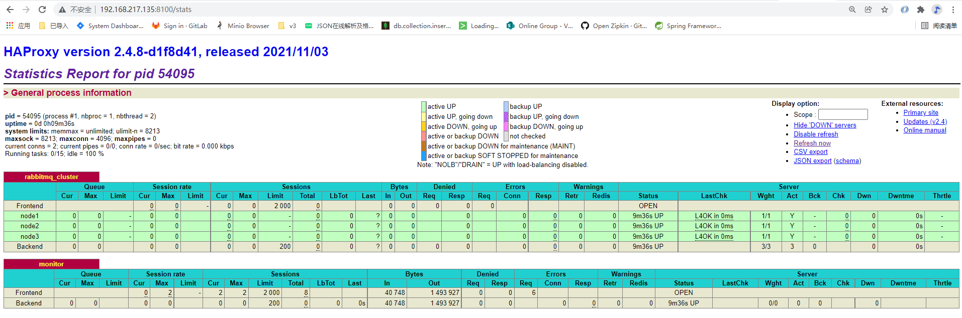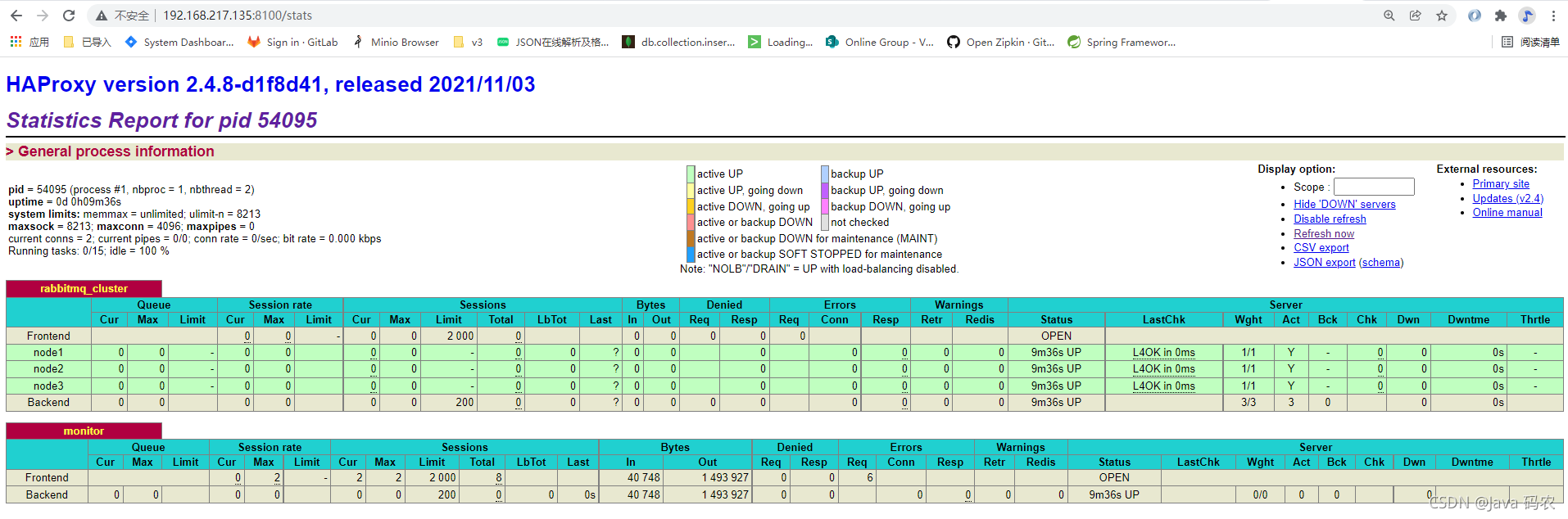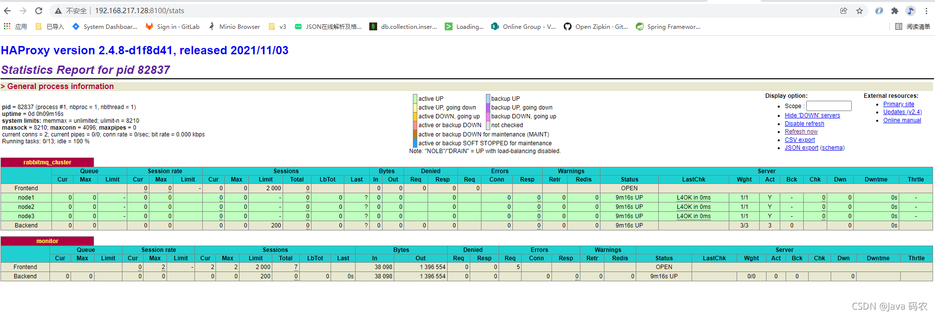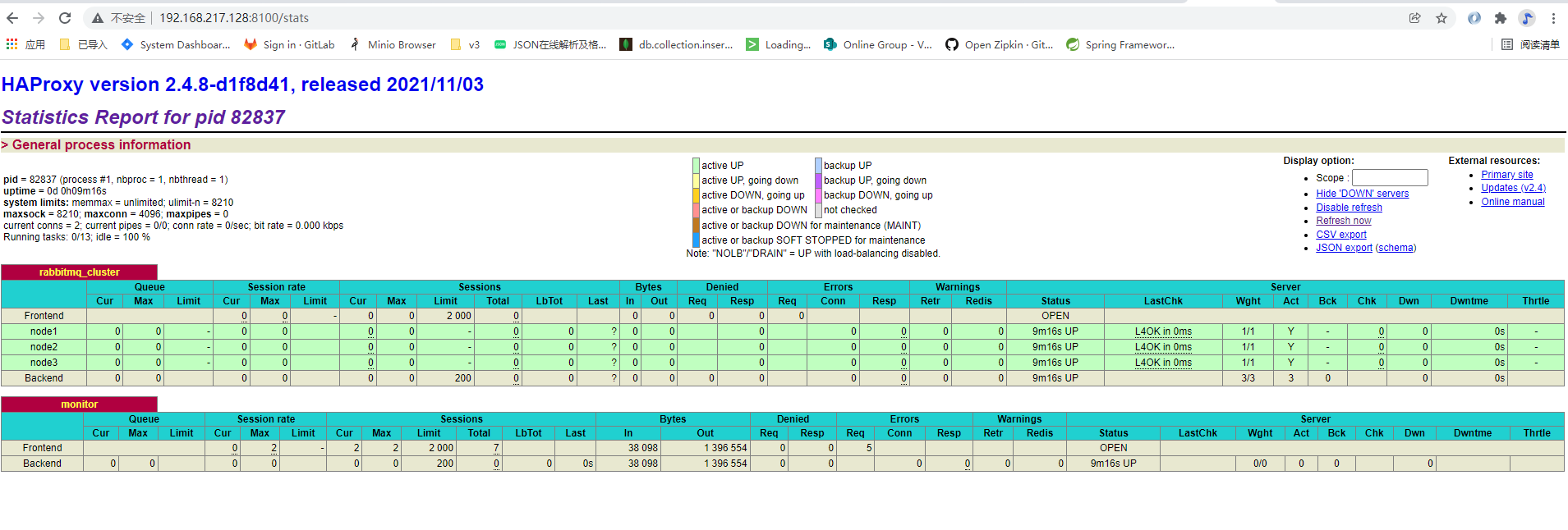 再查看 Haproxy 发现两个 haproxy 的节点上 收到了 不同的请求次数,说明负载均衡已经生效