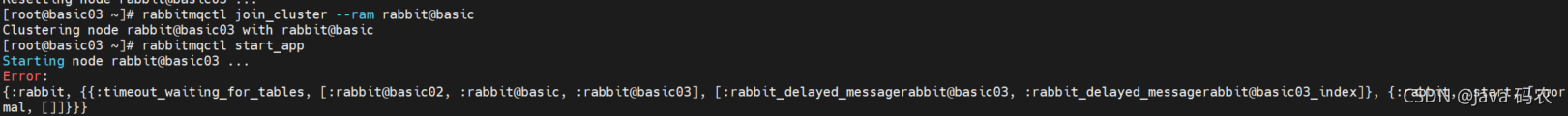 {:rabbit, {{:timeout_waiting_for_tables, [:rabbit@basic02, :rabbit@basic, :rabbit@basic03], [:rabbit_delayed_messagerabbit@basic03, :rabbit_delayed_messagerabbit@basic03_index]}, {:rabbit, :start, [:normal, []]}}}