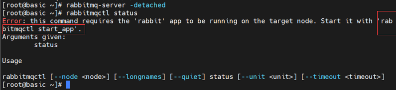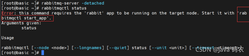rabbitmqctl start_app 只会启动 RabbitMQ 应用服务, rabbitmqctl stop_app 只会停止 RabbitMQ 服务
