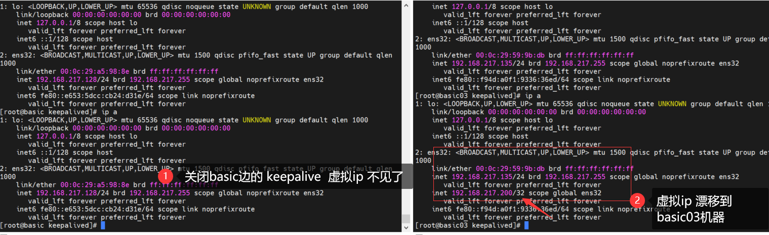 模拟basic 下线 ,虚拟ip 转移到basic03