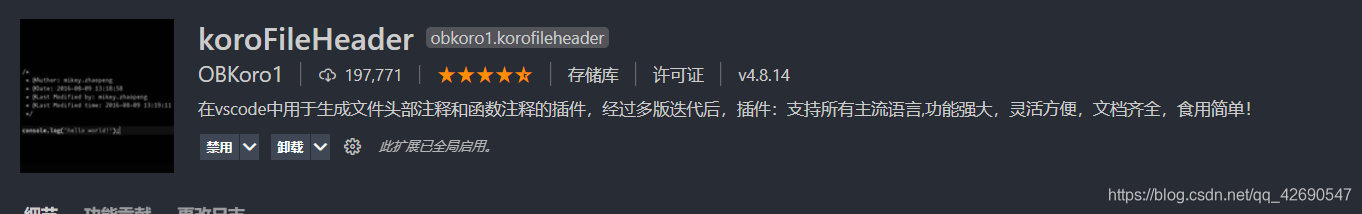 5. koroFileHeader (快捷注释,国产依赖,文档友好)