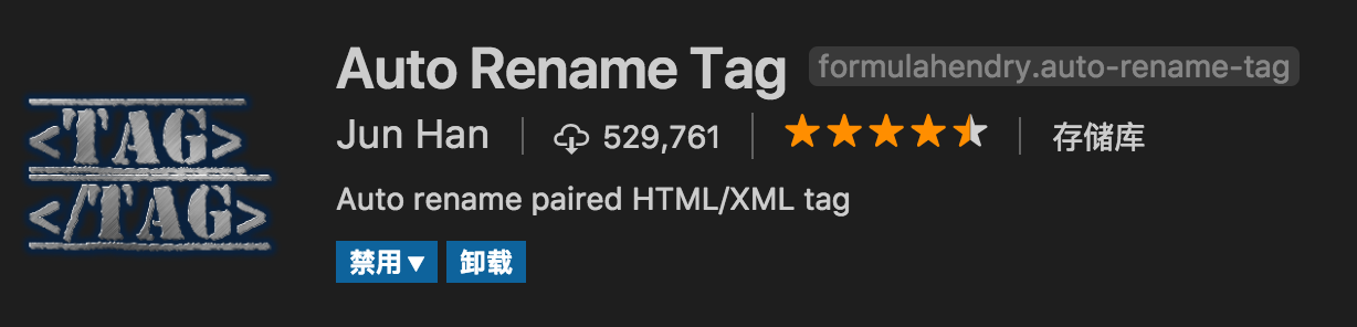 3.Auto Rename Tag 自动完成另一侧标签的同步修改