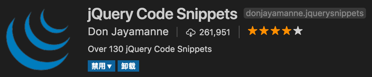 4. jQuery Code Snippets jQuery代码智能提示