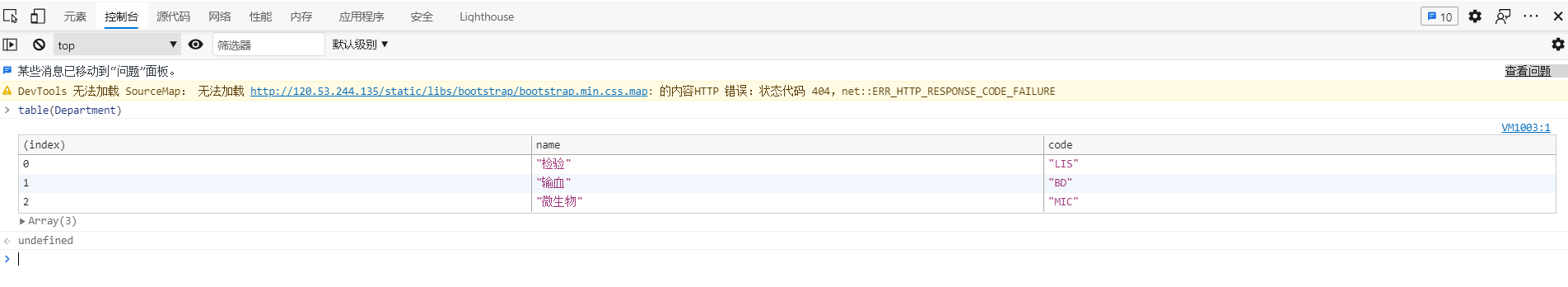 {name: '微生物', code: 'MIC'}]该数组在控制台正常显示如下: