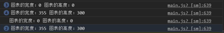 图表未切换的时候是正常的,如第一张所示,第二张是切换之后导致渲染的问题,故猜想出问题的地方是图表传染的组件出现了问题,带着这个疑问,我们到组件想让宽高的位置打印出图表渲染出的宽高。
