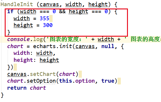 在研究mpvue-echarts的代码时候,发现调用这个组件会自动的初始化方法,都会先调用 HandleInit 的方法来渲染初始化echerts图表,