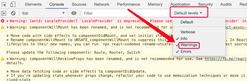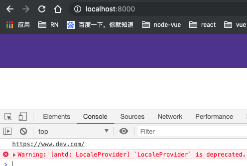 最后,启动项目,打开控制台,一堆警告,和错误提示,关于警告,就是react 钩子在新版本已经换名字了,现在的这些以后会过时了,都是 .umi 文件报的,并不是实例代码错误,你可以选择不展示在控制台