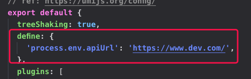 2. 修改 .umirc.js 文件,添加一个 define属性(这个是测试及开发)