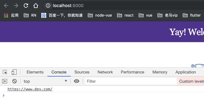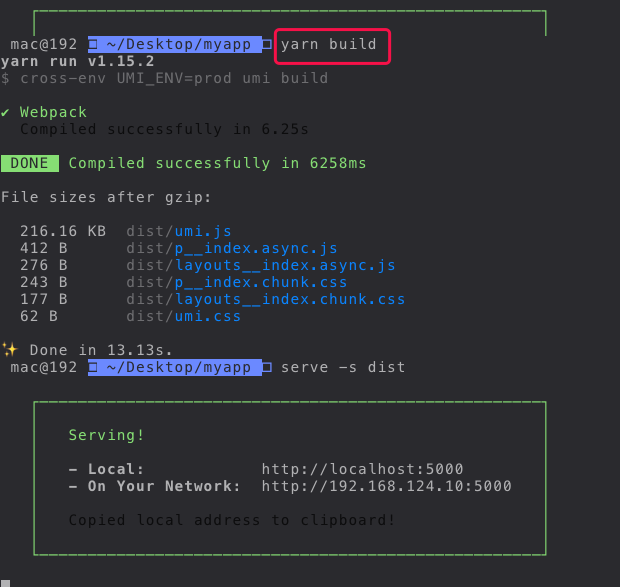 export const dva = { config: { onError(err) { err.preventDefault(); console.error(err.message); }, }, }; console.log(process.env.apiUrl);6. 打印开发 成功 !