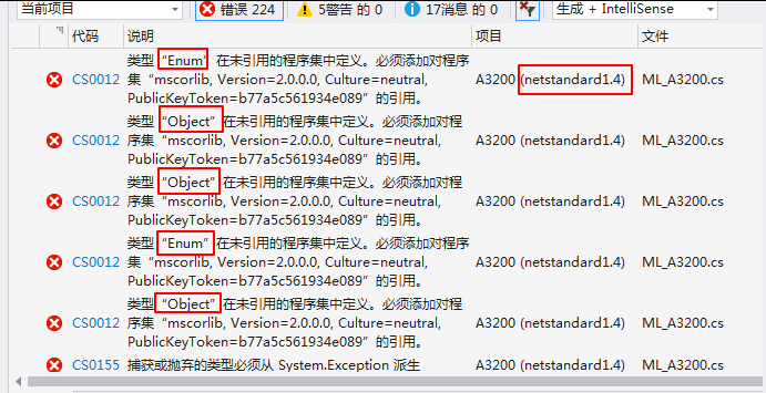 错误 CS0012 类型“Enum”在未引用的程序集中定义。必须添加对程序集“mscorlib, Version=2.0.0.0, Culture=neutral, PublicKeyToken=b77a5c561934e089”的引用。 A3200 (netstandard1.4)