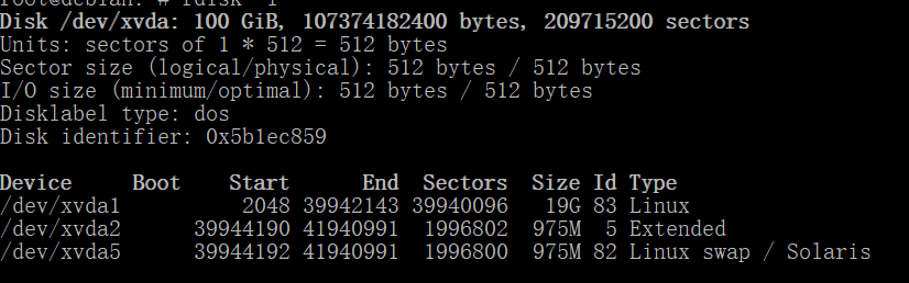 2. ssh 进入服务器, fdisk -l 看一下当前分区情况,以及磁盘是不是以及变大了。