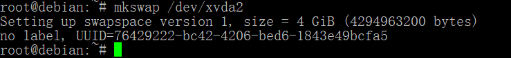 可以看到我们创建的 swap 分区,但是没有 uuid,使用指令 mkswap /dev/xvda2 即可创建swap信息