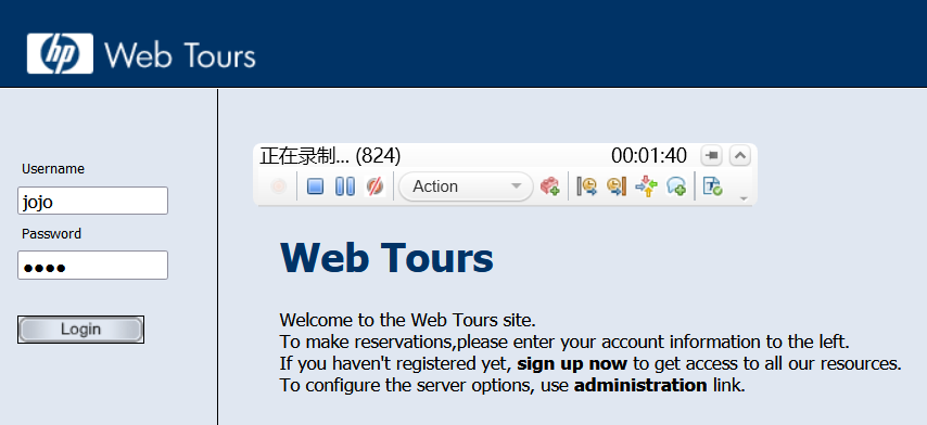 点击开始录制,LoadRunner会自动调用对应的浏览器,并开始录制操作。