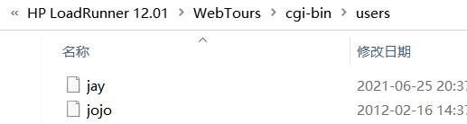 登录的用户名和密码,保存在D:\HP LoadRunner 12.01\WebTours\cgi-bin\users路径下