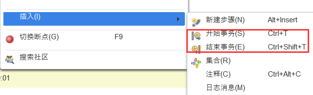 插入事务操作可以在录制过程中进行,也可以在录制结束后进行。LoadRunner 可以在脚本