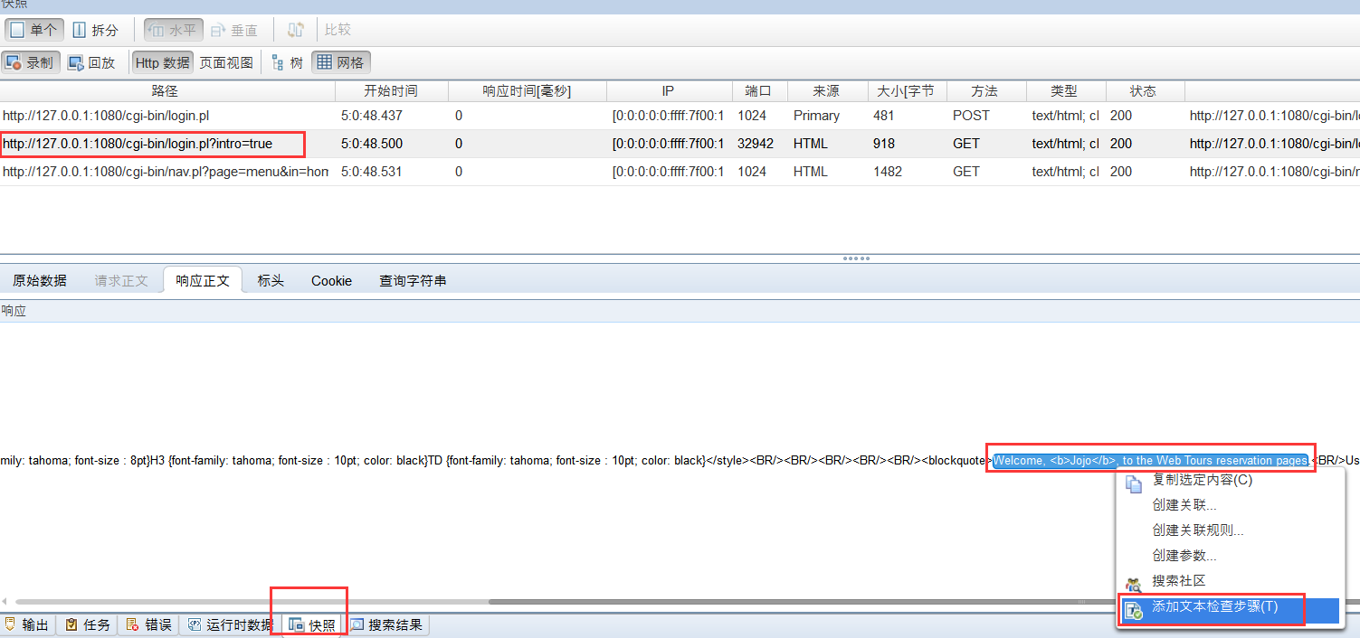 为了检查Web服务器返回的网页是否正确,可以插入检查点来验证网页上是否存在指定的Text。