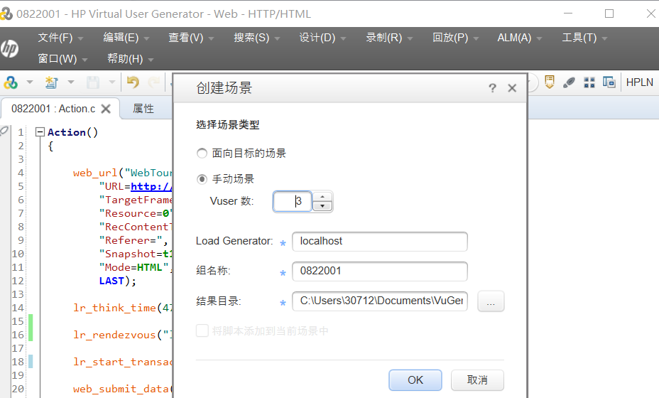 - 每一个虚拟用户的活动、参数化、定义事务、定义检查点等