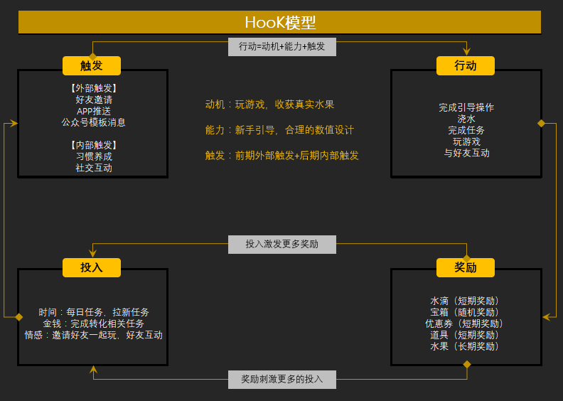 Hook模型:游戏通过不断循环“触发—行动—奖励—投入”让用户对其上瘾