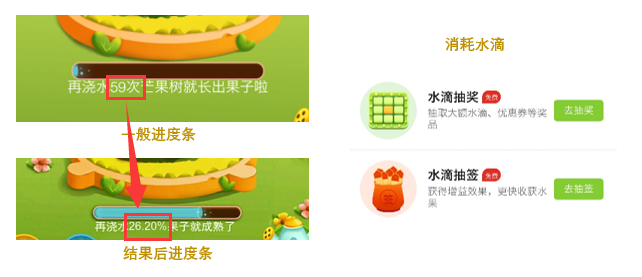 (图:多多果园进度条设计,消耗水滴的功能)