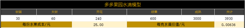 (多多果园早期成长数值设计,成熟期所需水滴数值会动态变化,这里暂定为3000)