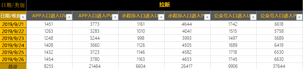 通过把数据格式规范化,结合简单的公式我们可在Excel 中建立自己的小数据库,然后结合数据透视表做带有简单交互的数据看板,便于监测&分析数据