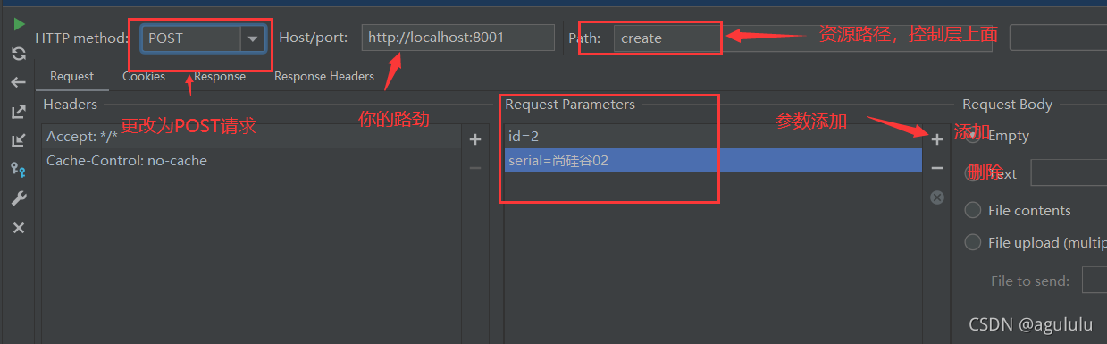 IDEA模拟post发送请求第一步:第二步: 发送请求准备 第三步:查看结果 版权声明:本文为agululu原创文章,遵循CC 4.0 BY-SA版权协议,转载请附上原文出处链接和本声明。原文链接:https://blog.csdn.net/agululu/article/details/120396398
