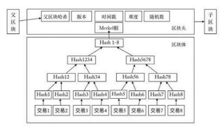 如下图所示,Merkle树是一种哈希二叉树,它是一种用作快速归纳和校验大规模数据完整性的数据结构。生成Merkle树需要递归地对节点进行哈希,并将新生的节点插入到Merkle树种,直到只剩下一个哈希节点,该节点就是Merkle树的根。有了Merkle根,可以快速检验某一笔交易在区块中是否存在,当N个数据元素经过加密后插入Merkle树时,最多计算2*log2(N)次就能检查出任意某元素是否在该树种,这样的数据结构大大提高了效率。